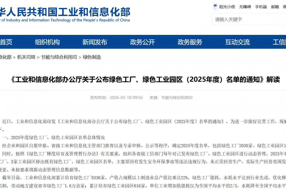 - ◆【绿色评定】工信部公布2025年度绿色工厂、绿色工业园区名单2026-03-26