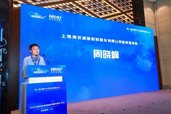 上海海优威新材料股份有限公司市场总监别红玲向参会嘉宾分享了《可回收组件封装材料发展方向》,介绍了现阶段光伏组件中胶膜生态设计的技术发展,该探索将有助于提高未来光伏组件的可回收性。