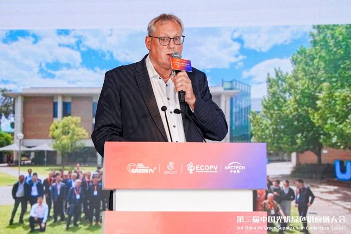 中国绿色供应链联盟理事长金书波为大会开幕致辞。他认为,光伏产业也形成了我国最具特色和优势的产业链,成为新质生产力的代表行业之一。他提出三点建议:一是努力构建产业健康有序、可持续发展新格局;二是产学研协同发展,不断推动技术创新;三是在对外开放上要有新作为。要用好金砖国家工业创新大赛、金砖新工业革命伙伴关系论坛等能源电子产业合作平台,在开拓金砖国家光伏市场上有所作为。