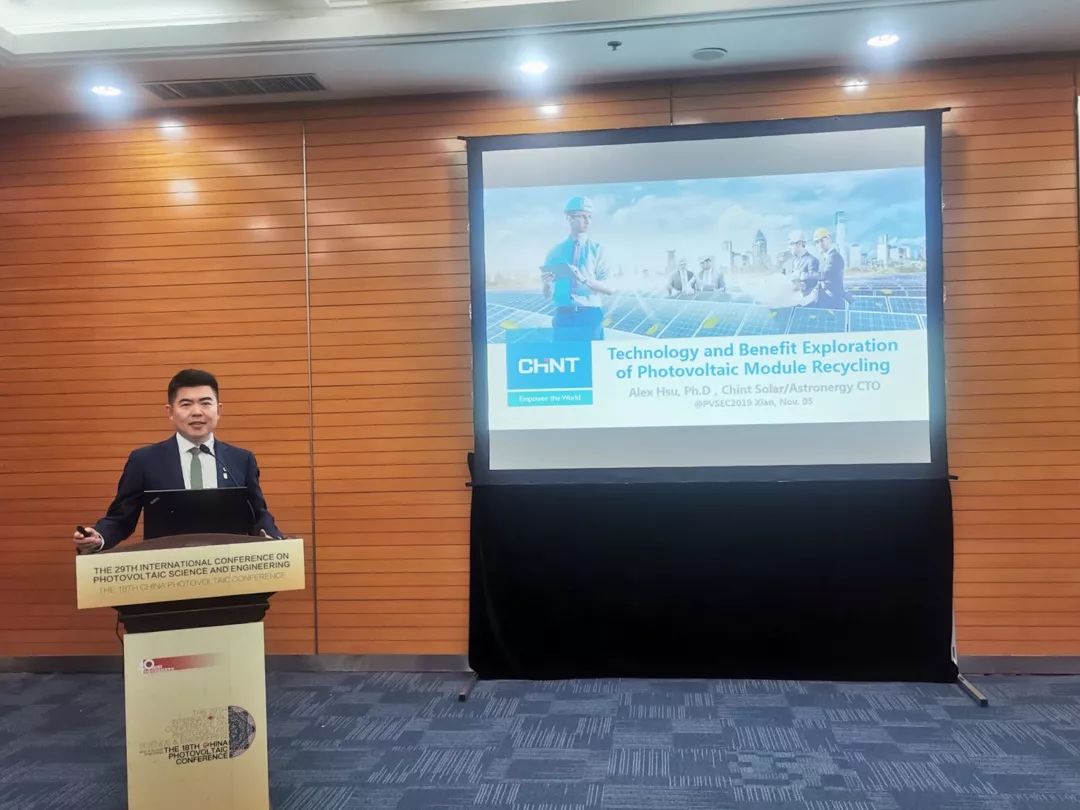 2019年11月4日,“第29届国际光伏科学与工程会议(PVSEC29)暨18届中国光伏学术大会(CPVC18)”在西安市曲江国际会议中心隆重召开,来自全球光伏领域的权威专家、企业代表近1500人与会。5日下午,ECOPV 暨国际能源署IEA PVPS Joint Workshop2论坛在曲江国际会议中心313会议室顺利召开,边会围绕绿色生态光伏生命周期的探索与发展,着眼当下组件回收利用问题开展热烈讨论,并同期召开“工信部绿色供应链联盟光伏专委会(即ECOPV Alliance)”筹备启动仪式。正泰新能源作为联盟发起单位之一受邀出席,并由正泰新能源徐伟智博士发表光伏组件回收技术相关报告,吸引现场众多关注。